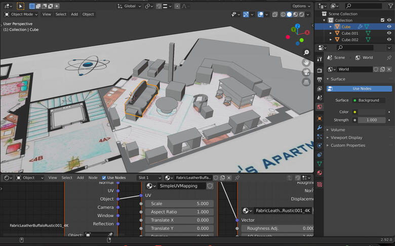 I have also been working on a popular sitcom apartment layout based on a blueprint I found online, creating various pieces of furniture and other layout elements, which is still in the early phases of development.